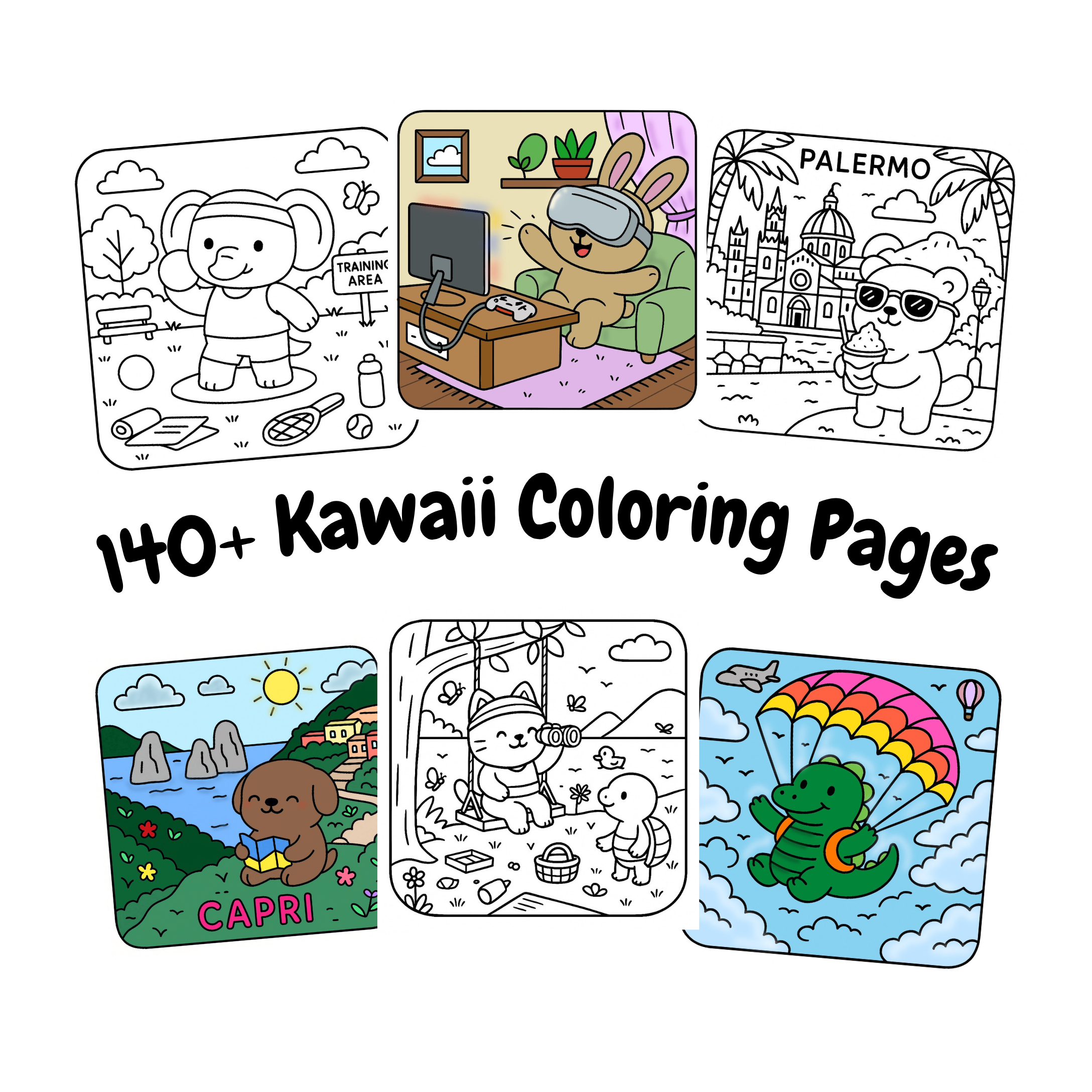 Over 140 original kawaii illustrations ready to color, plus 40+ sports-themed designs and 40+ inspired by Italy’s most iconic places. All available in high-quality printable PDF and transparent PNG (300 DPI), perfect for both printing and digital use. A complete set that brings you creativity, relaxation, and fun wherever you choose to color! And that’s not all: you’ll also get free monthly updates for an endless source of inspiration!